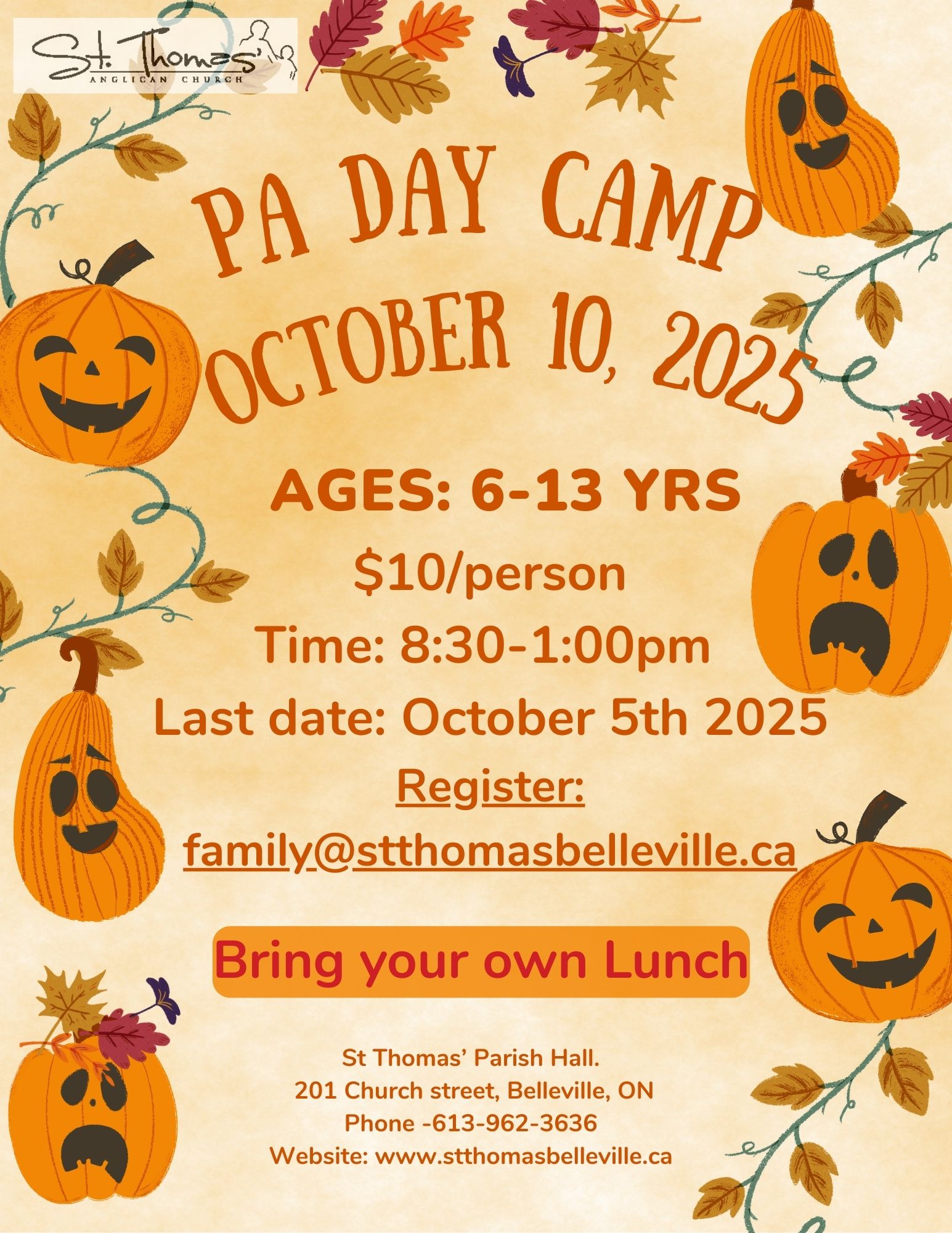 Please see the attached information for our PA Day Camp. We kindly ask that you register by October 5th, 2025 to secure your child’s spot.